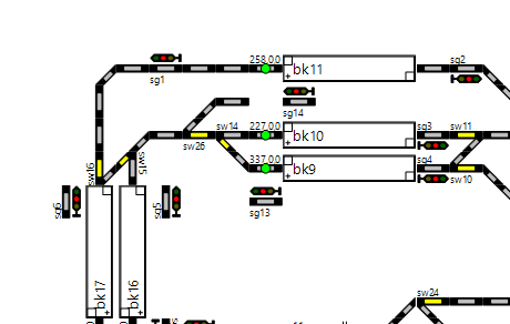 Mittels Blöcken, Rückmeldern und Signalen lässt sich hier ein vollautomatisierter Fahrbetrieb realisieren.